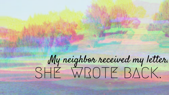 The best I could do was to remain as anonymous as possible. No return address on the poem. Affixed with a post-it offering the opportunity to chat via email without judgment. So, I wrote my neighbor a poem and I sent it away with good energy and hoped that my message was challenging but not threatening. Fingers crossed, I hope she writes back.
